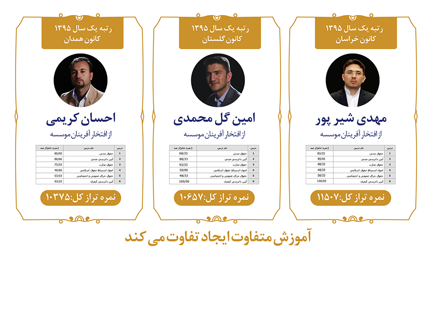 1.ارتقا سطح علمی نخبگان حقوقی به منظور کسب رتبه های برتر