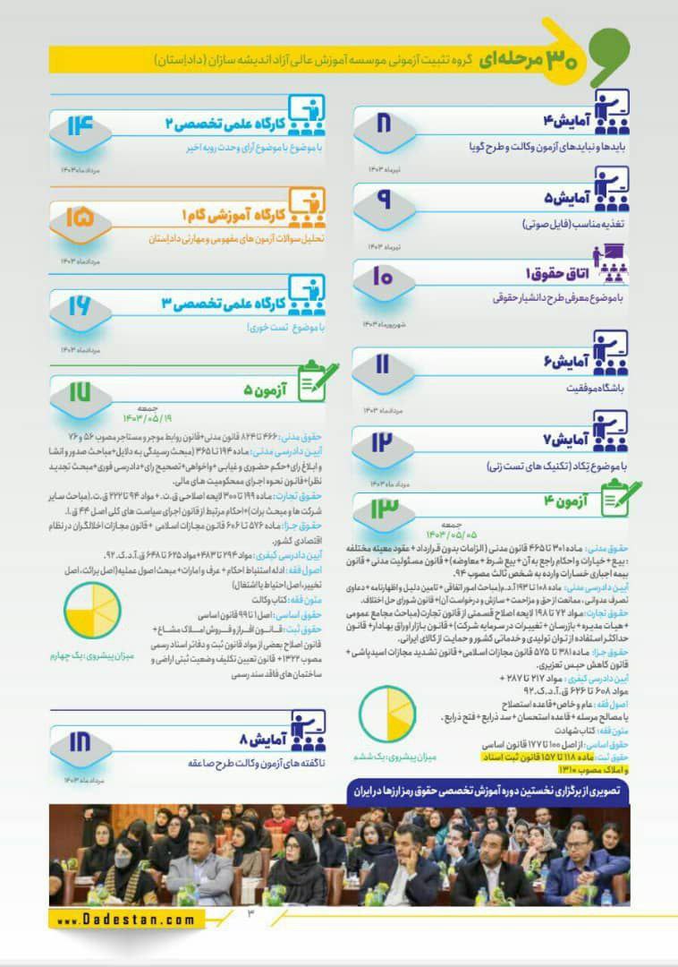 اتاق فکر طراحان سوالات آزمونهای مفهومی مهارتی، هر ساله با نظمی دقیق و برنامه ای مشخص اقدام به بودجه بندی آزمونهای مفهومی مهارتی می نماید. رعایت اصول یادگیری صحیح مبتنی بر، مطالعه اولیه، مرور و تسلط نهایی، از ویژگی های منحصر به فرد این بودجه بندی هاست.